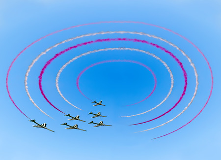 KAVALA, GREECE- JUNE 21, 2014: Airplanes flying during the exhibition for Kavala Airshow 2014, in Kavala, Greece.