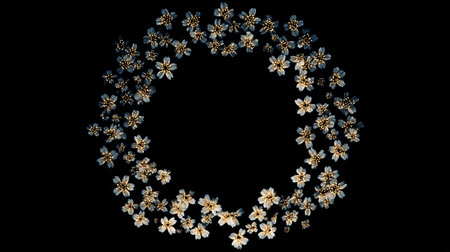 Circular design of flowing lines and small shapes arranged in a symmetrical pattern, evoking a sense of movement and elegance. The monochromatic palette creates a clean, sophisticated aesthetic. The image is suitable for use in various contexts where a visually appealing, artistic, and minimal design element is needed.