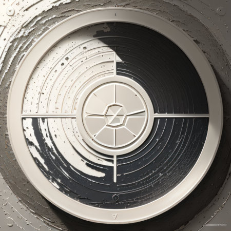 blue metal circle on water, featuring orange and indigo hues. trompe l'oeil composition with vernacular photography elements. burned and charred appearance adds abstract geometry. vibrant color materiality and raw textures enhance the visual appeal. ai generated