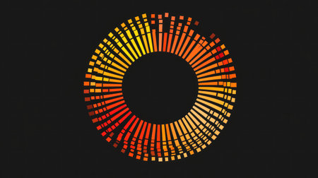 This eye-catching abstract design features a circular chart made of vibrant bars in blue and orange, ideal for representing data in a modern visual context.