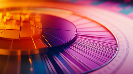 A simple circular graph in gradient colors with sections divided by clean lines, set on a light background for a clean, modern aesthetic
