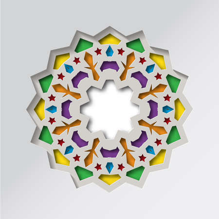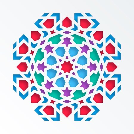 Islamic geometric pattern. Vector 3D muslim mosaic, persian motif. Elegant oriental ornament, traditional arabic art. Mosque decoration element. Colorful mandala for brochures, greeting cards