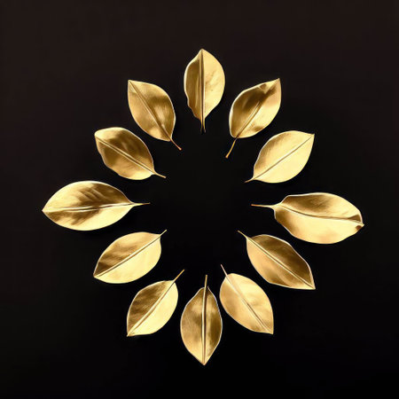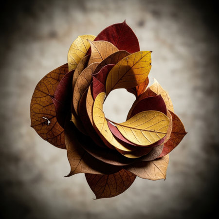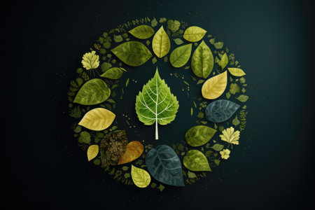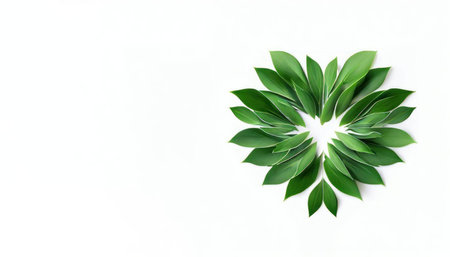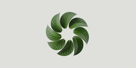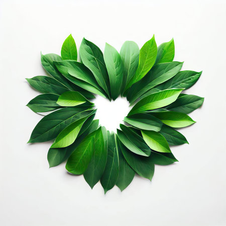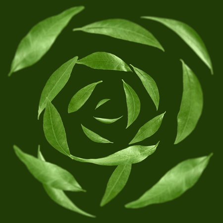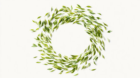 Abstract eco-friendly leaf arrangement forming a nature-inspired circular pattern.