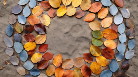 vibrant autumn leaves arranged in a circle, created with generative ai