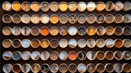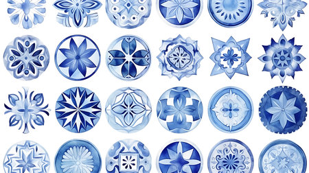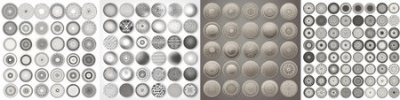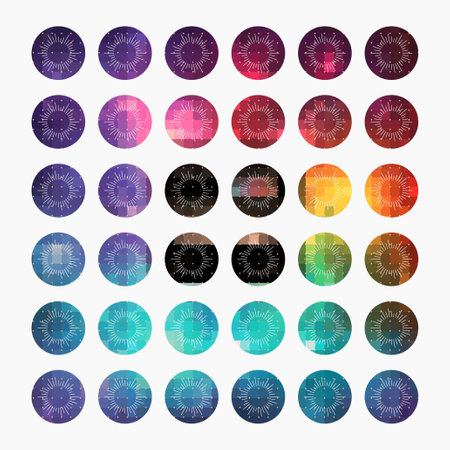 A vibrant assortment of circular patterns featuring diverse textures and colors arranged neatly on a clean white background, perfect for artistic projects.