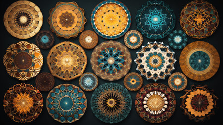 Geometric mandalas with modern design elements in vibrant colors and patterns