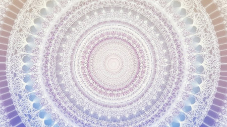 A soft, ethereal background composed of concentric circular lace patterns with a gentle gradient of pastel purple and blue.