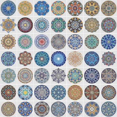 Set of Colorful Decorative Mandala. Vintage decorative elements. Hand drawn background. Islam, Arabic, Indian, Ottoman motifs.