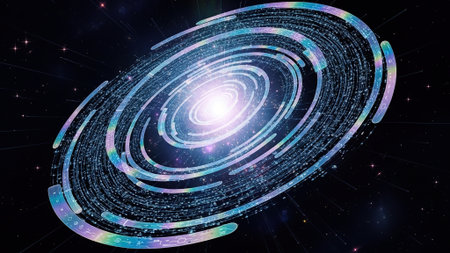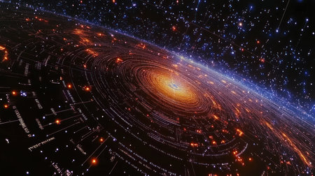Cosmic digital galaxy swirling, glowing network, star system
