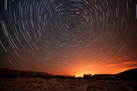 Long exposure photo capturing the mesmerizing trails of shooting stars circling the celestial pole