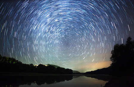 Star Trails, Beautiful Blue Night reflection
