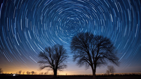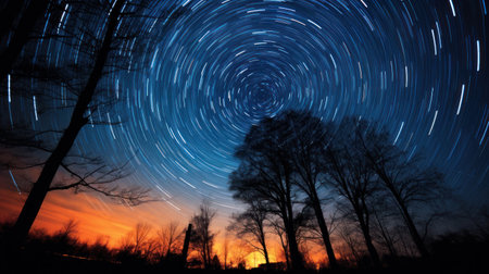 a stunning star trail image with tree silhouettes, capturing the beauty of the night sky above nature
