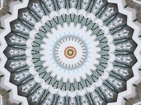 Perspective tile ethnic geometry pattern illustration ornament vintage. HQ rendering. Photographs kaleidoscope mandala.