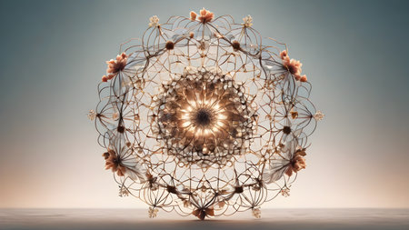 A 3D rendering of futuristic kaleidoscopic patterns background