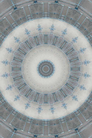 Blue and white abstract background with a kaleidoscope pattern on the facade of a church