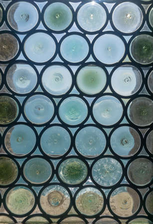 A Round metal window on the stone wall of an unidentified residence