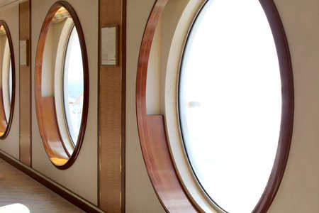 Three beautiful round windows of a cruise ship are very suitable spot to see the view of the sea.
