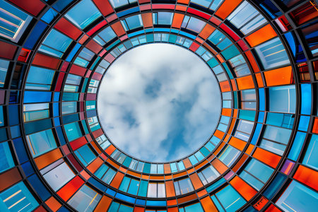 Depicting a circular building with colorful glass, high quality, high resolution
