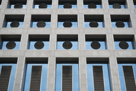 Modern office building design concrete wall and windows vertical perspective stock photo