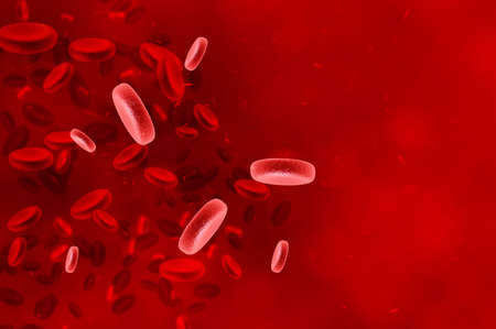3D illustration of human red cells flowing in blood vessels. Macro view.