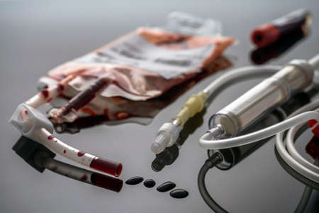 blood bag obtained from blood donation with soft-focus and over light in the background