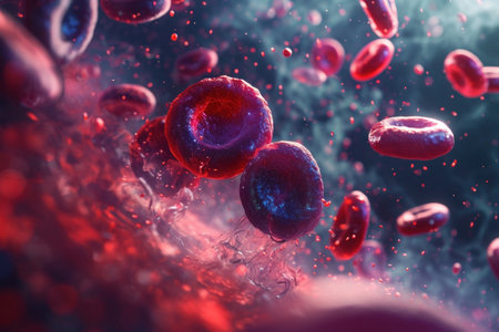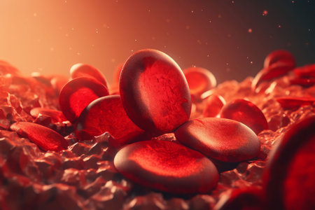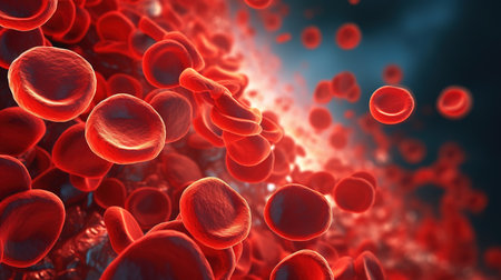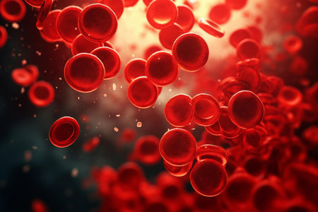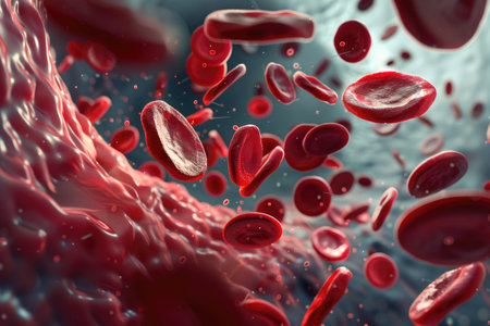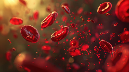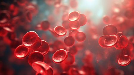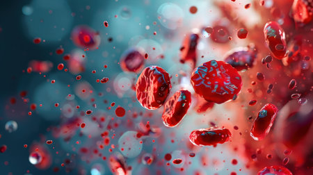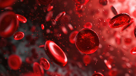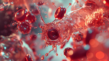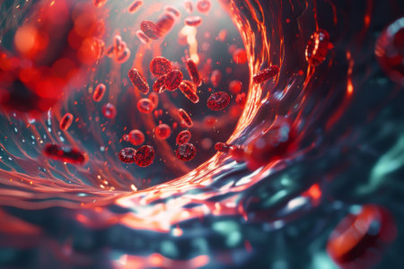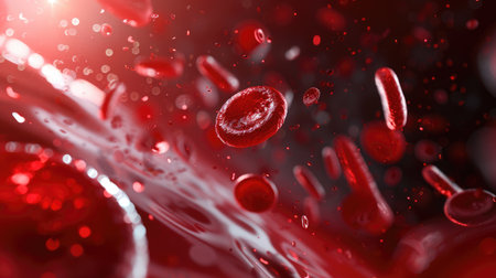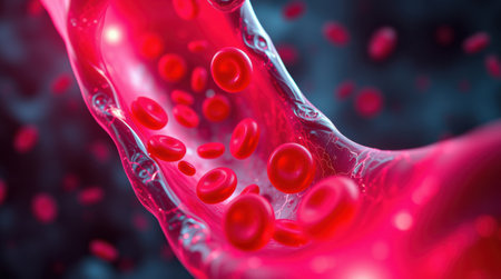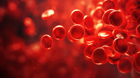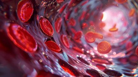 Stunning and depicting detailedion of red blood cells gracefully flowing through the bloodstream, showing their intricate structure and dynamic motion