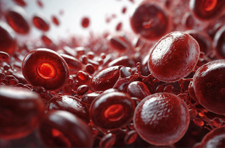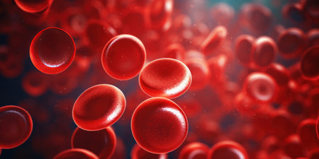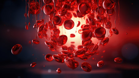 Red Blood Cells and Hemoglobin Close-Up Medical Imagery. A.I.