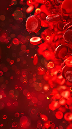 Red blood cells flowing through blood vessels. Detailed erythrocytes in a dynamic environment. Ideal for scientific presentations, health education, and biological studies. Space for text. Vertical