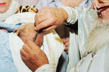 Baptism of the Child.Cut off hair with orthodox baptism