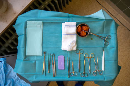 surgical instruments on a small instrument table for performing an operation