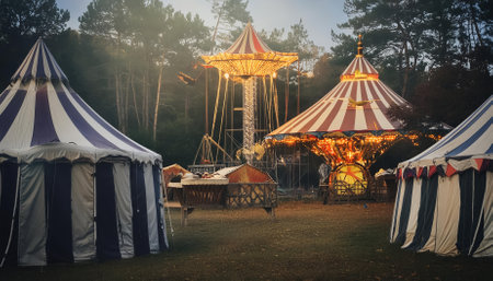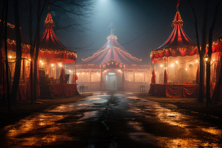 Circus tent on fairytale background. Illustration Generative AI