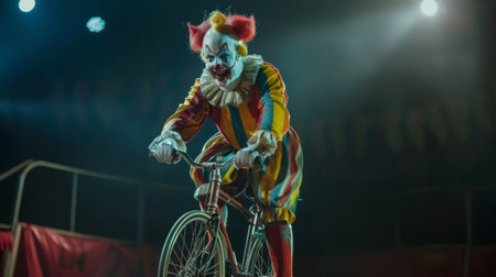 Fictional clown on stage under spotlights made with generative AI