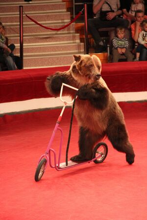 Circus brown bear on speech on the arena
