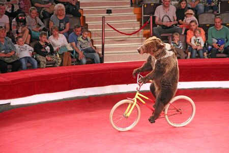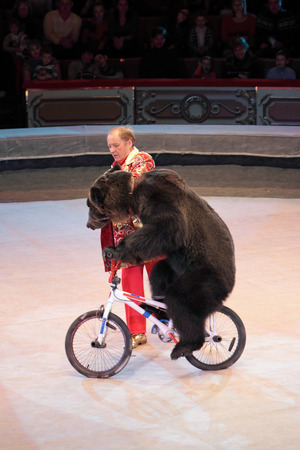 MOSCOW, RUSSIA - NOVEMBER 27: The presentation of the Golden Buff. The bear on a bicycle of the Moscow State Circus on November 27, 2011 in Moscow, Russia