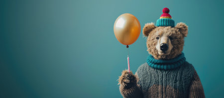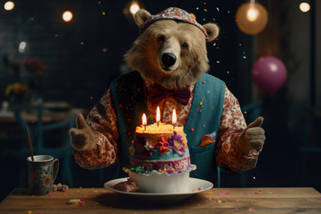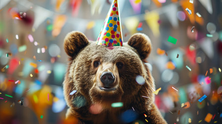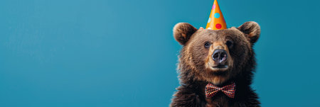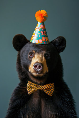 Brown Bear with Birthday Hat and Bow Tie