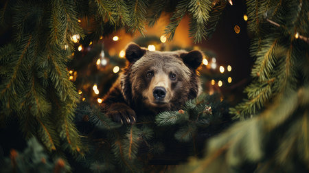 Beautiful brown bear portrait on a tree
