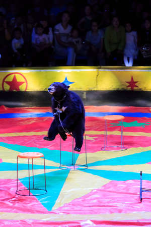 MOSCOW, RUSSIA - NOVEMBER 27: The presentation of the Golden Buff. Trained bear of the Moscow State Circus on November 27, 2011 in Moscow, Russia