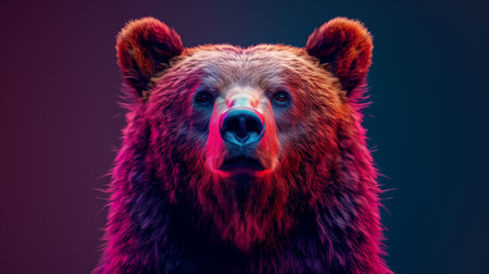 Close Up Of A Brown Bear With Pink And Blue Lighting