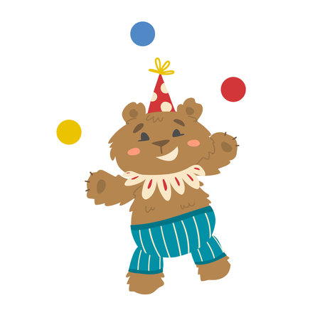 Circus bear juggler. Funny artist character. Kids vector illustration