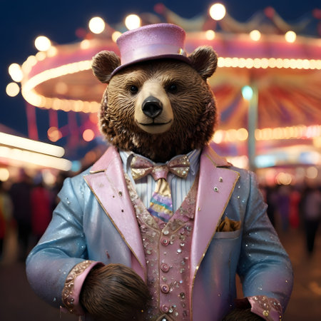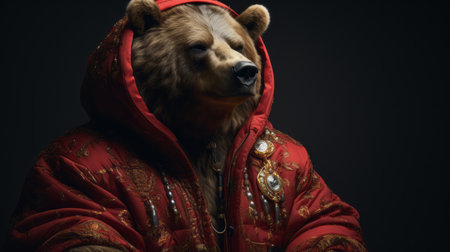 Confident bear exudes style in trendy suit and tie. Concept Fashion, Bear, Confidence, Style, Trendy