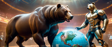 bear with gold coins. the concept of enrichment.