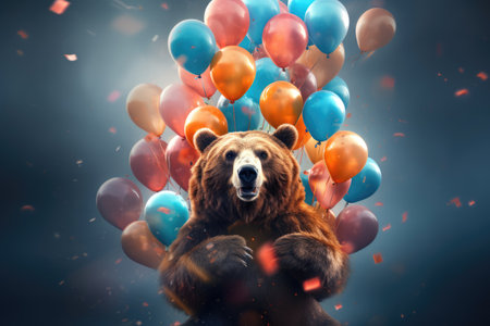 Grizzly bear with colorful splashes. 3D rendering