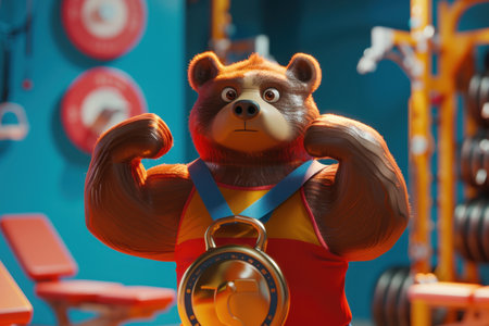 Bear Wearing Boxing Gloves Ready to Train