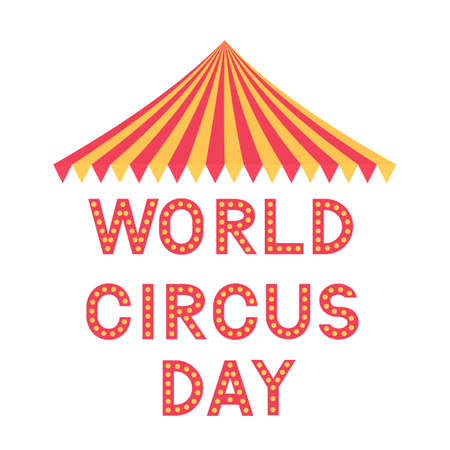 World Circus Day lettering with tent isolated on white. Easy to edit vector template for typography poster, banner, flyer, sticker, t-shirt, postcard, etc.
