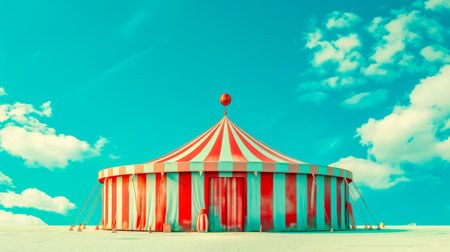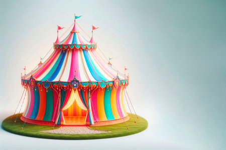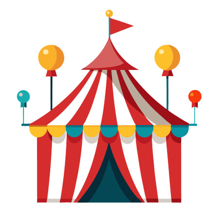 A vibrant illustration of a circus tent, perfect for designs related to entertainment, fun, and childhood. The image features a colorful and playful design.