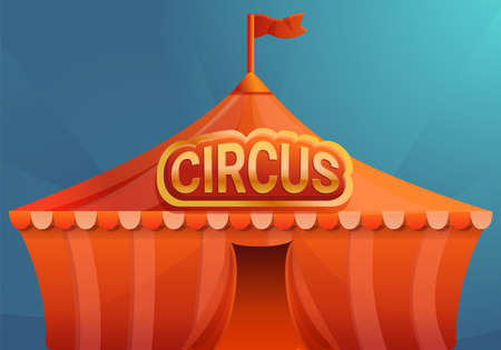 Circus on blue background concept banner, cartoon style