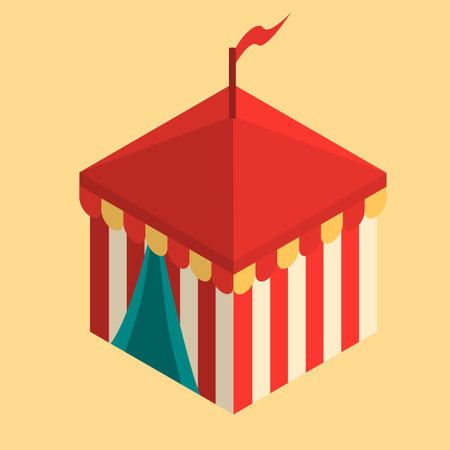 Circus acrobat clown tent, striped holiday tent isometry square tent vector illustration