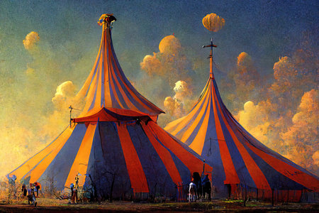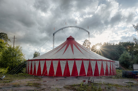 Dramatic circus tent under stormy sky