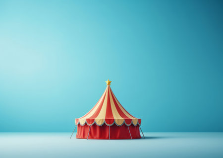 A red and white circus tent on a blue background
