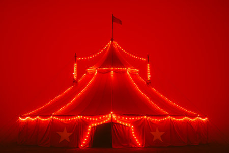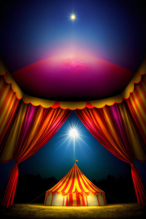 Shimmering lights illuminate a vibrant circus tent. AI